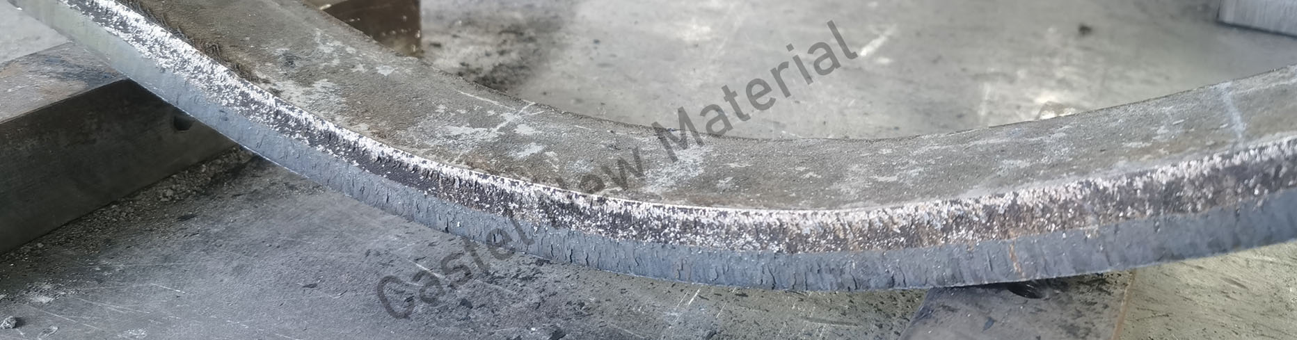 manufacturing process is used to make a smooth chromium carbide overlay surface on mild steel base plate. The overlay offers exceeded wear life and is designed for applications in which